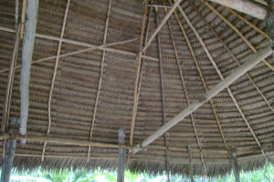 The nursery was extended and the cleared area of the community was planted with tropical aguaje (Mauritia flexuosa) fruit trees and diverse species of hard wood which have a valuable price in the market of Iquitos. Eighteen members of the community worked in rotational shifts on the project (Plantations, Cultural Center and Nursery). The whole community was able to continue training in agroforestry and two members of the council initiated project leader training, so that they can manage the future of the project. Achual adults learned new techniques for harvesting aguaje crops which maintain the standing trees. Traditional harvesting involves destroying the tree to get to its fruit. Ten years ago they could obtain these valuable fruits by walking a short distance. Now it takes 24 hours to find these trees in the forest. We also registered with GPS (Global Positioning Systems) the existent natural plantations of aguaje to avoid the clear cutting of these trees by neighbouring residents who destroy this palm for their valuable and delicious fruit to sell in the market. We continued to 1. coordinate with the Apu for the expansion of program offerings in the Cultural Center where the people learn how to balance their cosmovision Achual with 21st century savvy; 2. Coordinated with the tribal project council in the development of the project and training in leadership skills; 3. Maintained the camu camu nursery and plantation; 4. expanded the cultural center with the building of the “traditional tombo”, all people learned the heritage and craft of traditional techniques.